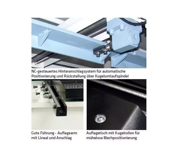 • NC-gesteuerter, motorisch präzise verstellbarer Hinteranschlag mit Kugelumlaufspindel