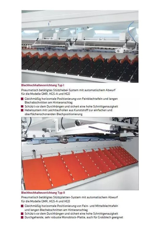 • Blechhochhaltevorrichtung Typ I oder Typ II